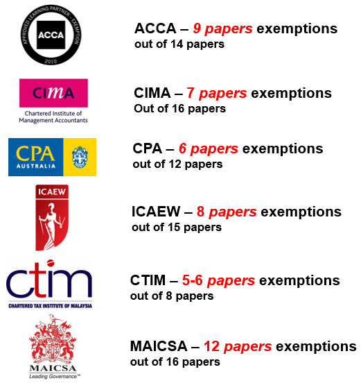 Upon completion, students are eligible for exemptions from the below Professional bodies as our Accounting and Finance degrees are accredited by them: